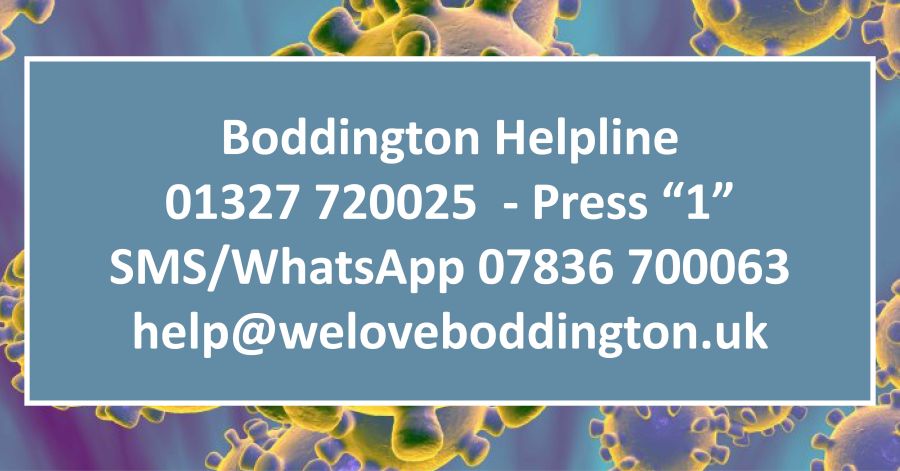 Hi everyone, we have no idea what the coming weeks are going to bring with regard to Corona Virus and Self Isolating. But we have set up a number (using the village hall switchboard) - 01327 720025 then Press 1 - for people in Boddington who need help. We will need local volunteers to help, so if...